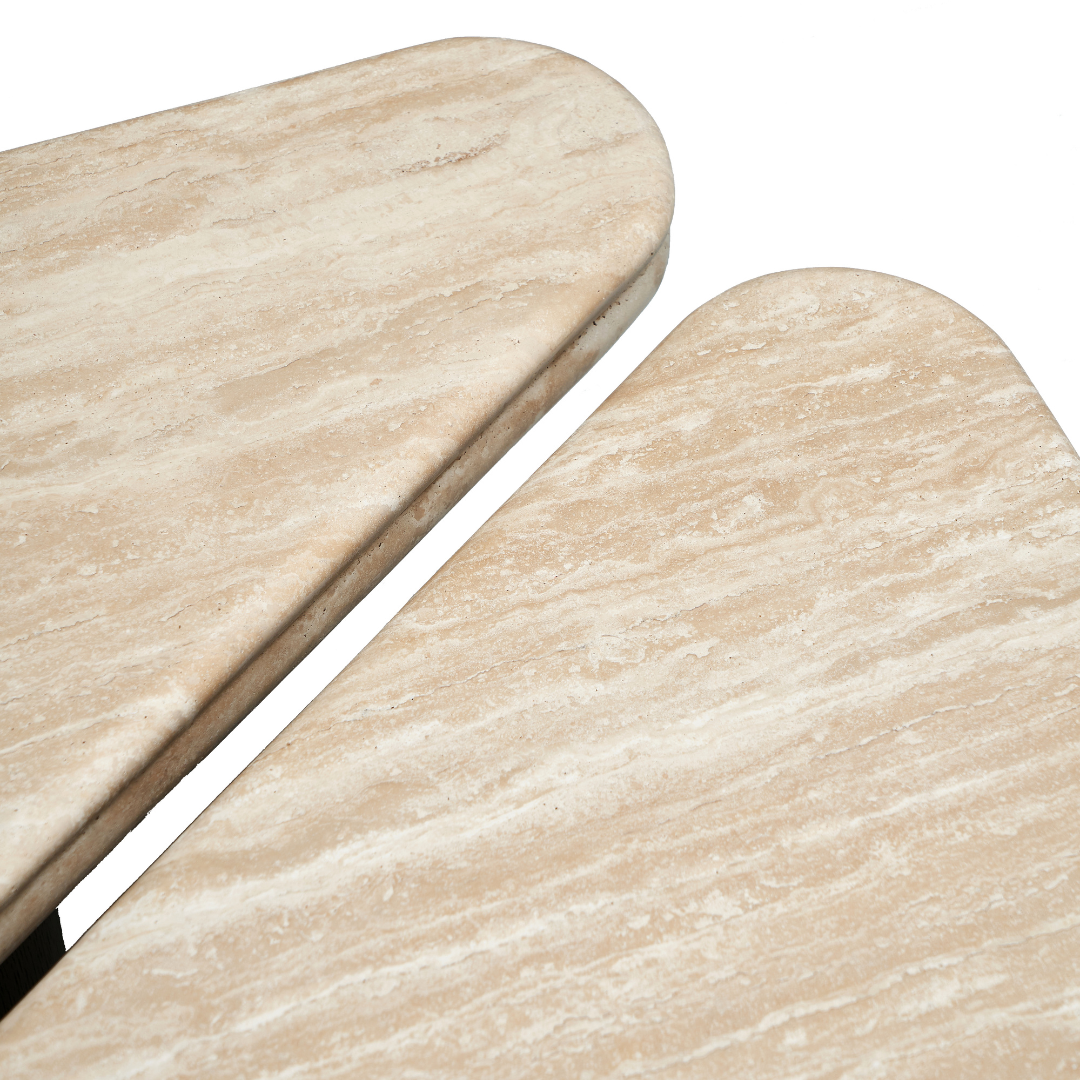 تضيف هذه الطاولة لمسة فنية إلى المكان، حيث تجمع بين الجمال والعملية في تصميم واحد، وتمنح المساحة إحساسًا بالابتكار والتناغم يجعلها نقطة جذب أنيقة تعكس ذوقًا راقيًا واهتمامًا بالتفاصيل.