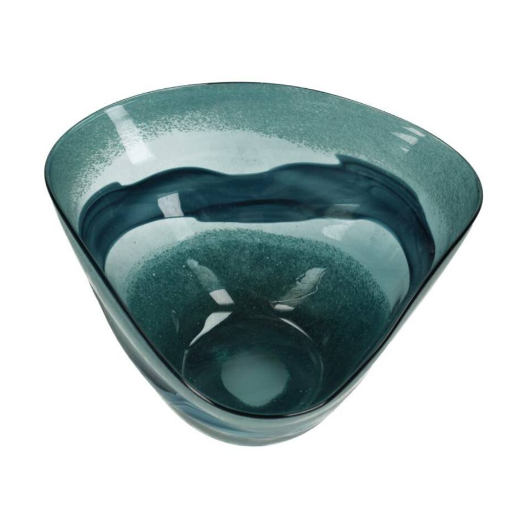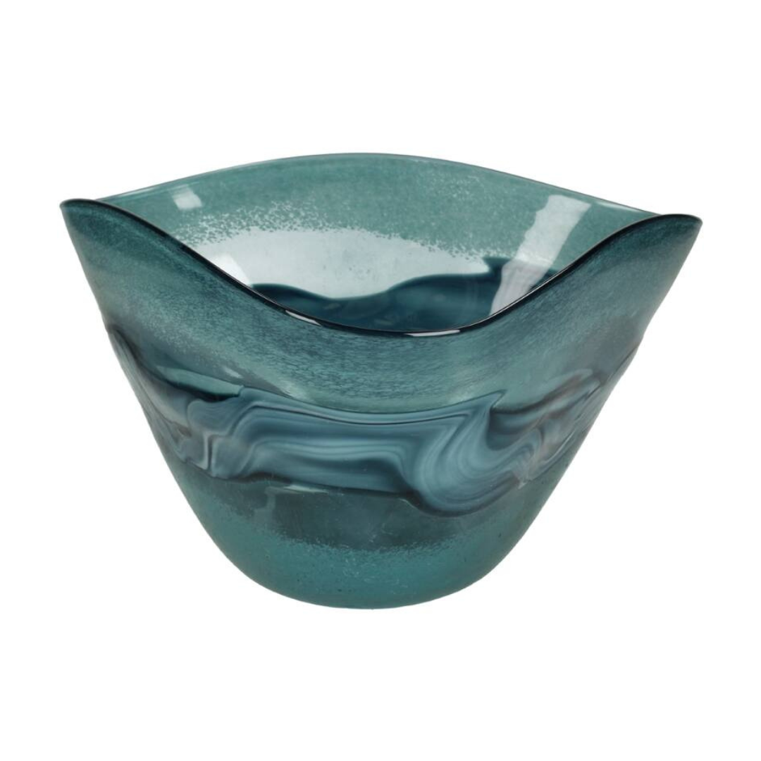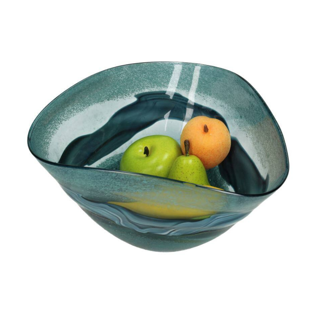 يجمع الوعاء بين التصميم الفني والاستخدام العملي، فهو مثالي لعرض الفواكه، القطع الزخرفية، أو كقطعة مركزية مستقلة. يعكس النمط المموج الفيروزي الضوء بشكل رائع، مضيفًا حيوية لأي مساحة.