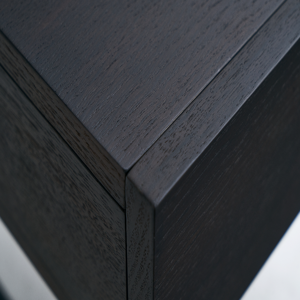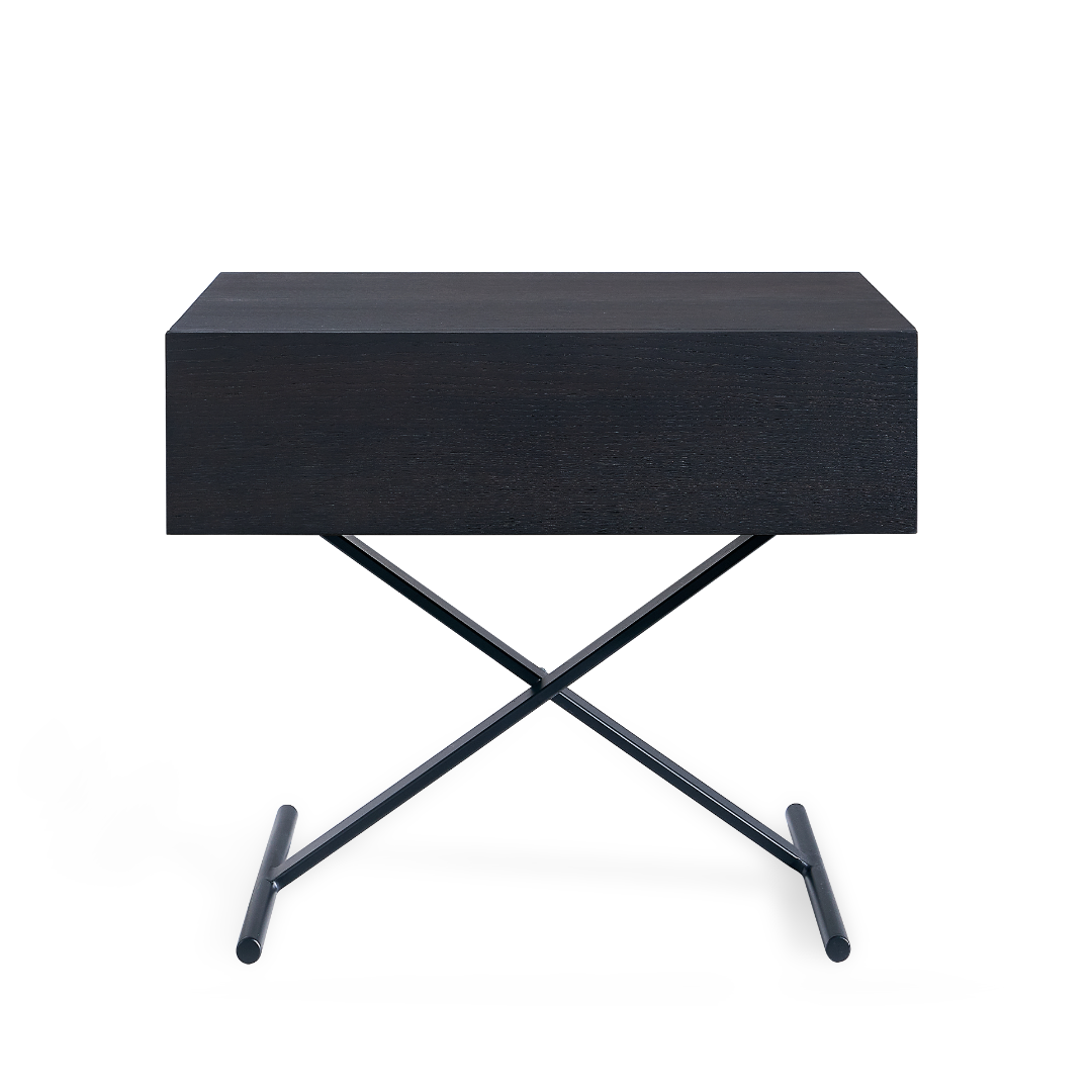 The Veria Bedside Table is a sleek and modern addition to any bedroom. Its design features a spacious MDF veneer top, supported by a solid wood structure and an elegantly crafted iron leg. This nightstand combines functionality with a contemporary aesthetic, perfect for enhancing your bedroom decor.