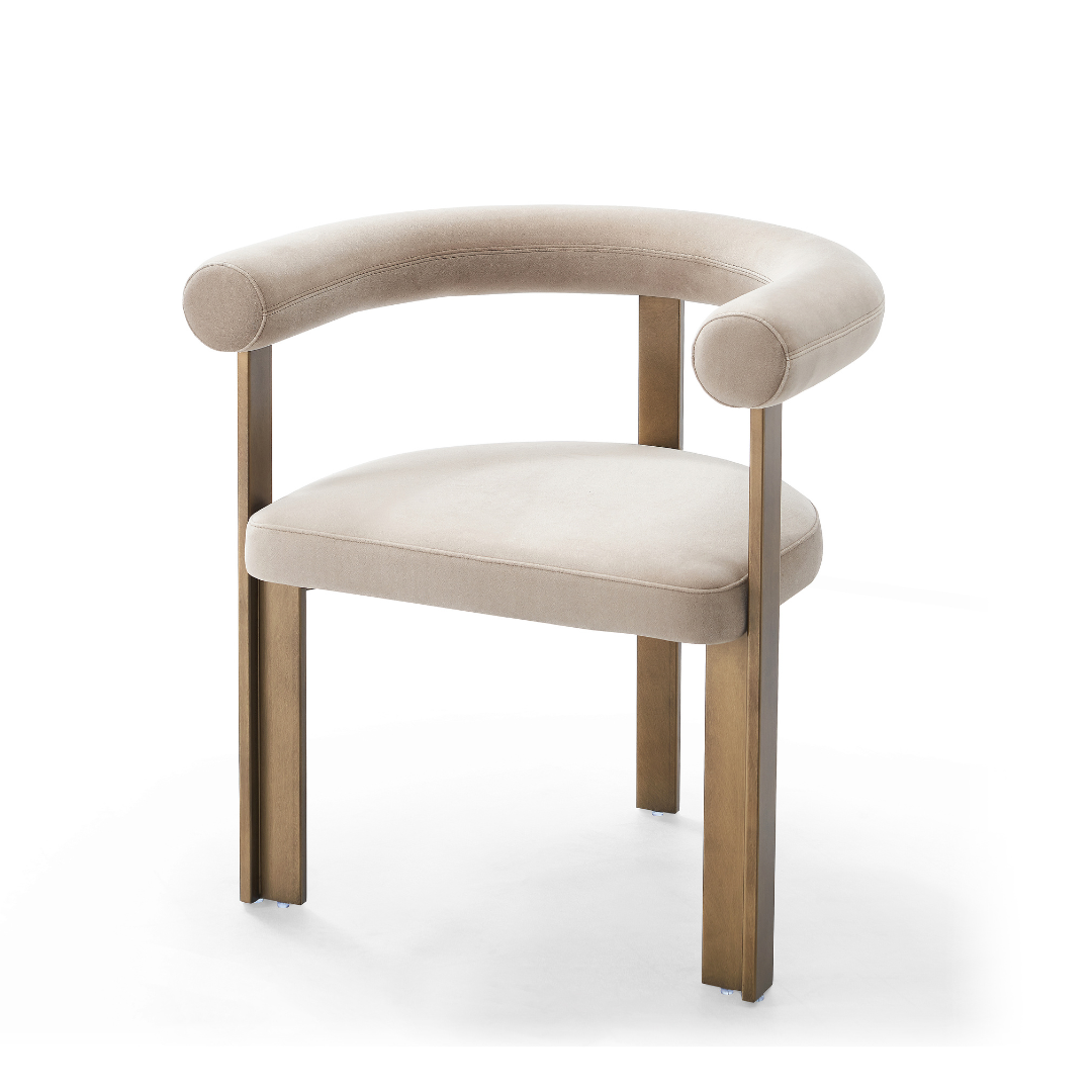 Crafted with care and precision, the Bram Greige Dining Chair by Ris elevates any interior with its timeless design and premium materials. The subtle greige tone pairs effortlessly with a variety of color schemes, while the brass frame enhances its contemporary charm. Ideal for modern dining rooms, the Bram Greige Dining Chair offers a perfect balance of style, durability, and comfort.
