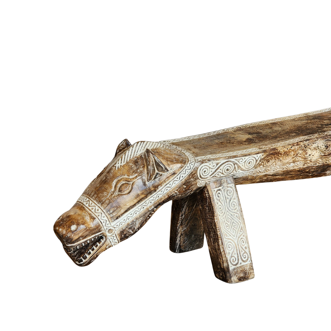 The Kuda Medium Horse Bench - Grey is a true masterpiece, perfect for adding both charm and practicality to your living space. Its generous size and elegant design make it ideal for hallways, living rooms, or covered outdoor areas, blending seamlessly with both modern and traditional interiors. Each Kuda Medium Horse Bench - Grey is meticulously handcrafted by skilled artisans, ensuring every piece carries its own story and cultural significance. This is more than furniture—it’s a timeless work of art.