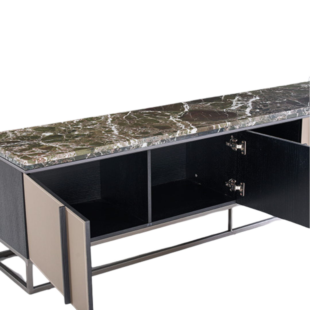 The Aurora Modern TV Unit with Green top Base is a perfect blend of contemporary design and functional elegance, crafted to elevate your living room décor. this TV unit offers a sophisticated platform for your television while providing ample storage space for media devices, consoles, and decorative accents. The harmonious combination of natural stone textures and minimalist lines ensures that the Aurora Marble TV Unit with Green top Base complements both modern and classic interiors. Its refined aesthetic and durable construction make it a statement piece that enhances the overall ambiance of any room.