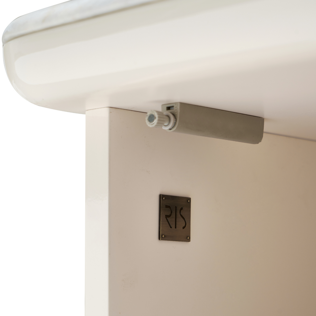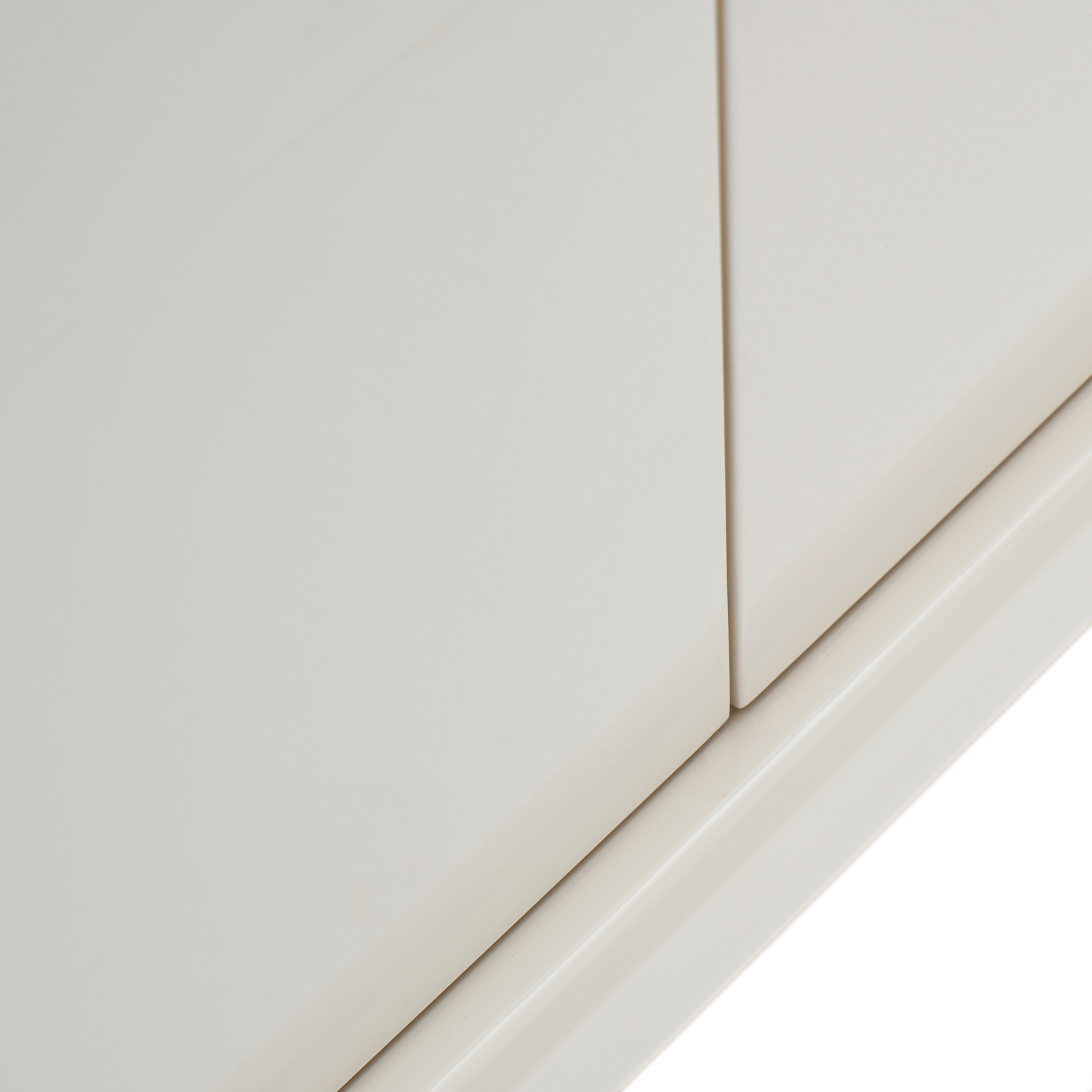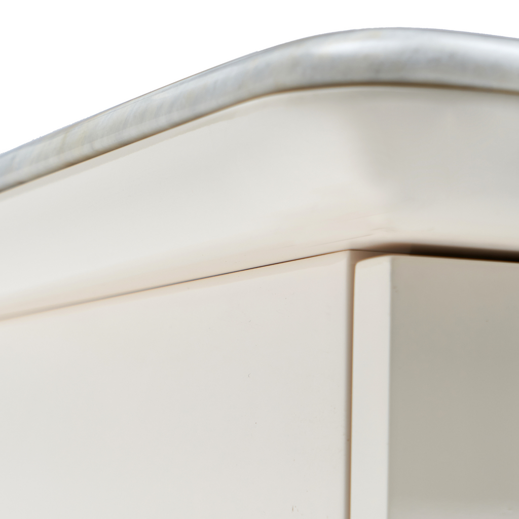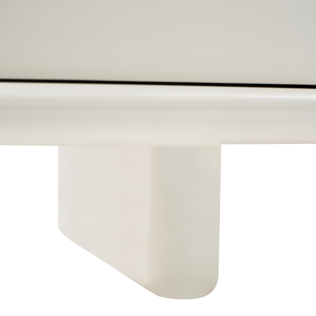 This sophisticated sideboard features a luxurious Versace marble top paired with a sleek cream-colored glossy lacquer finish on both the cabinet and legs. Clean lines and spacious shelving make it both elegant and practical, perfect for stylish, modern interiors.
