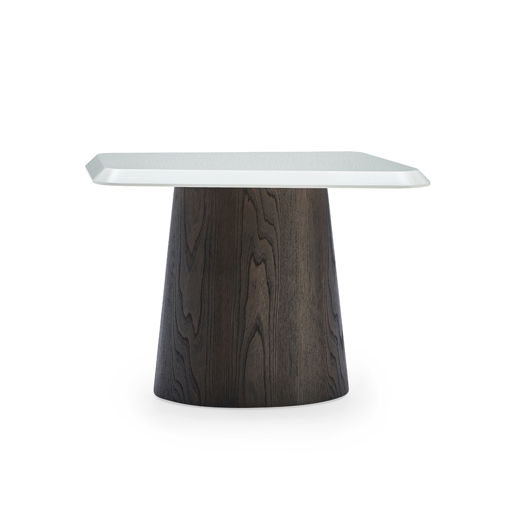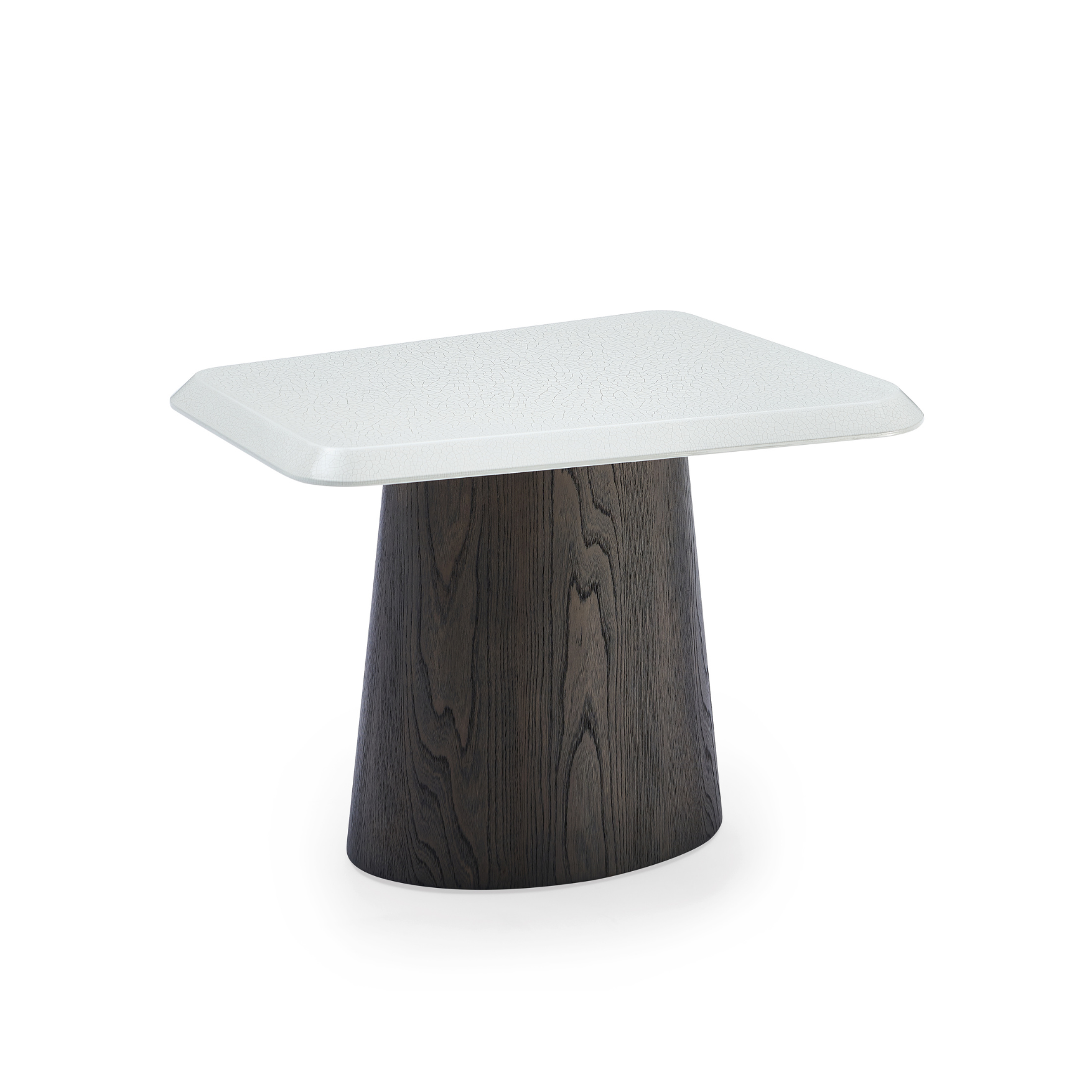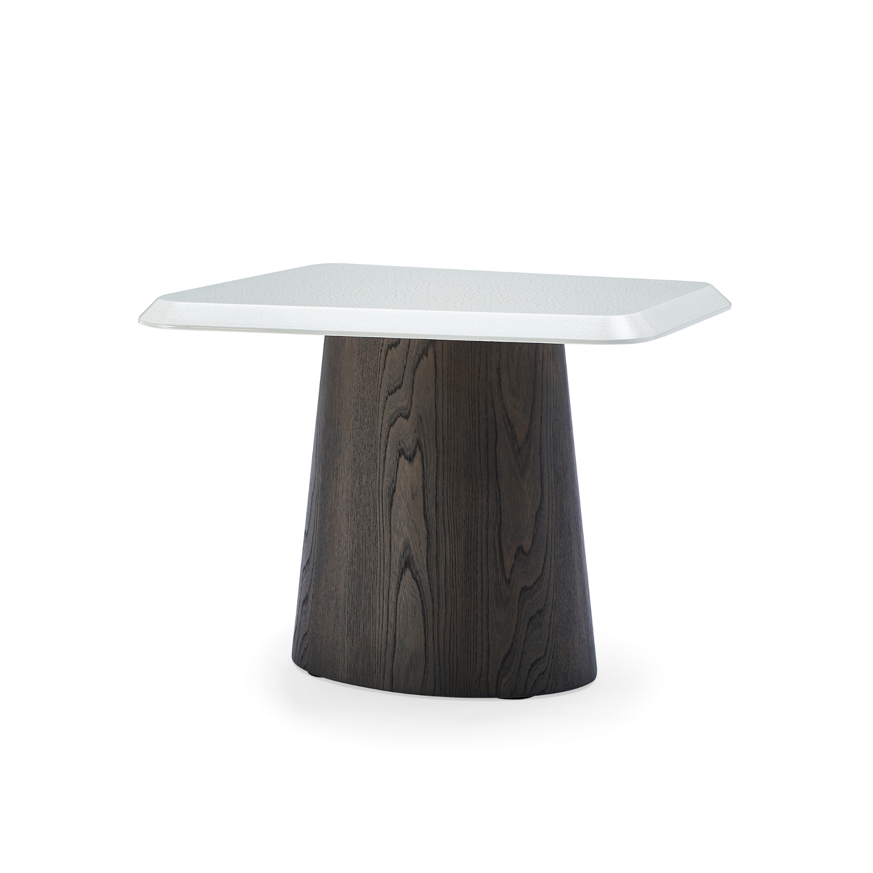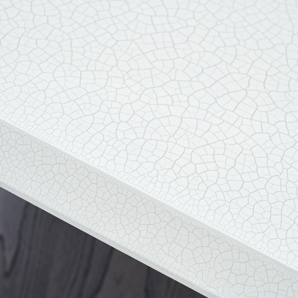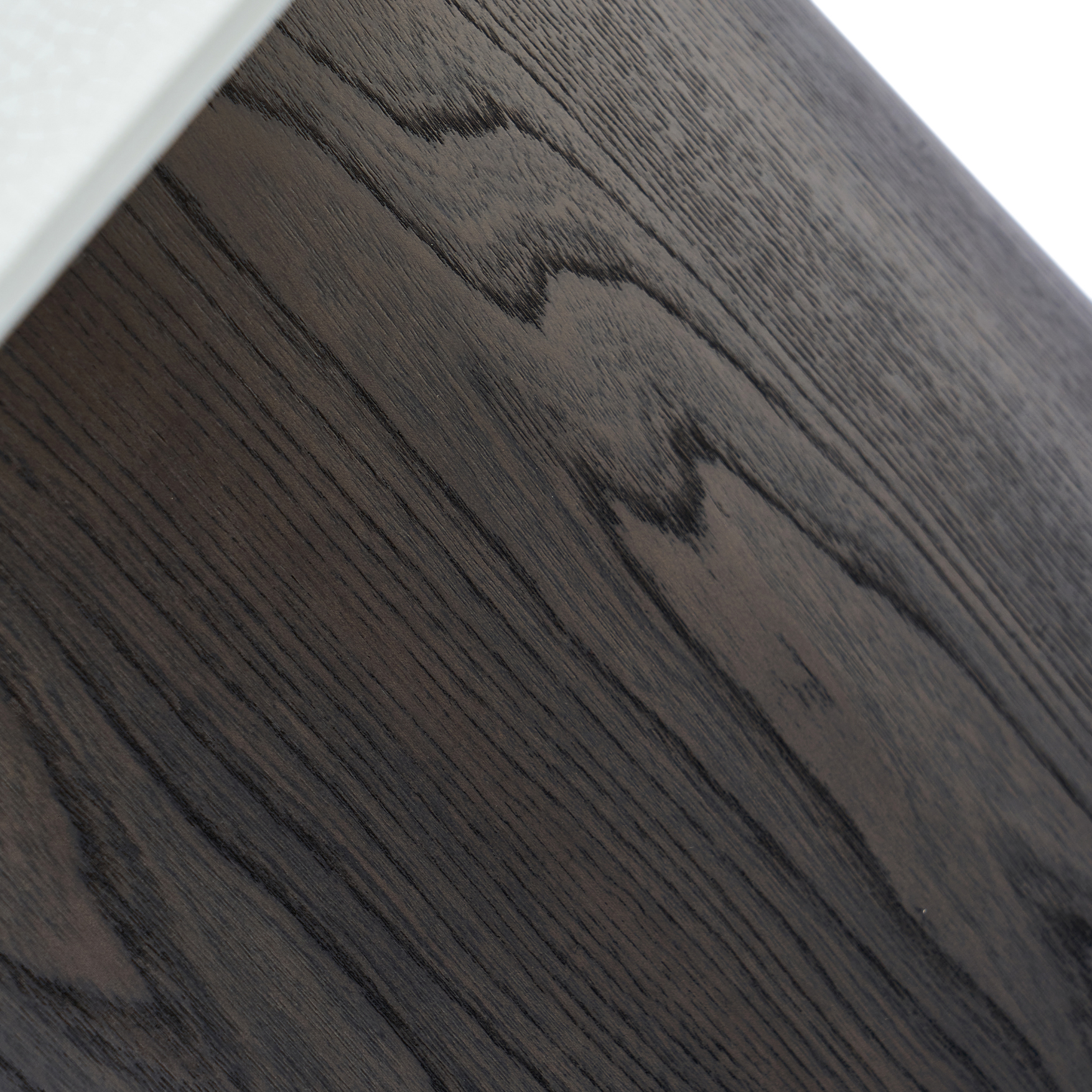 This stylish side table features an MDF top in a creamy crackle paint finish, offering a unique textured look. Paired with a deep grey elm wood veneer base in a smooth matte finish, it brings a touch of modern elegance to any space.