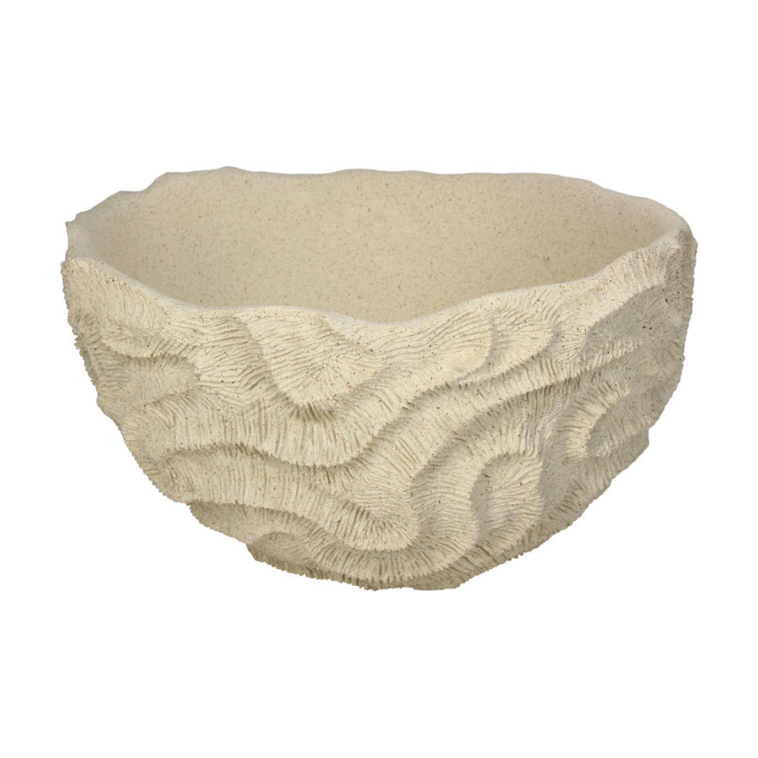The Coastal Sand Bowl combines practical functionality with artistic detailing, making it ideal for both everyday use and decorative display. The intricate coral textures and durable polyresin construction provide visual interest and long-lasting beauty. The Coastal Sand Bowl from Ris brings coastal sophistication, elegance, and a unique decorative flair to any home décor collection.