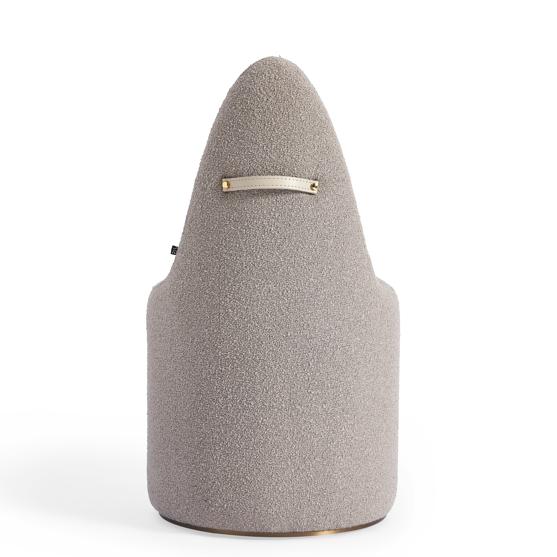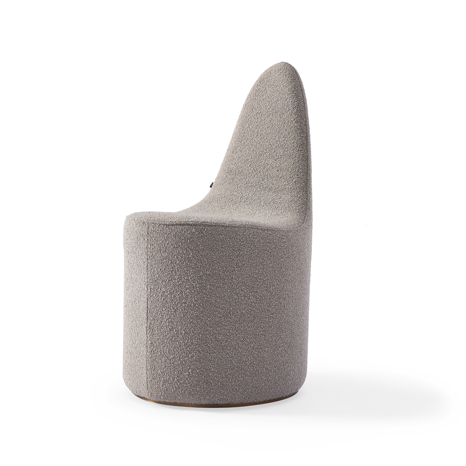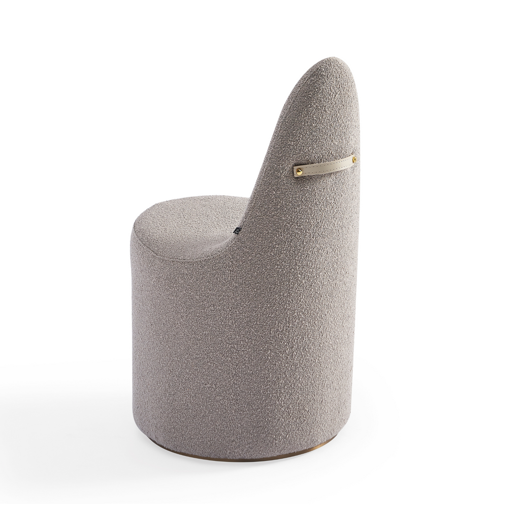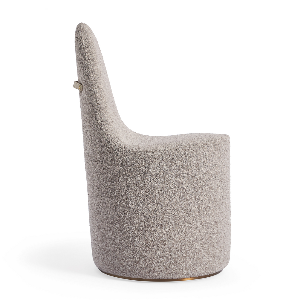 Elegant and modern, this dining chair features a fully upholstered body for a seamless look, complemented by a sleek backrest handle and a brushed bronze stainless steel base. A perfect blend of comfort and contemporary design.