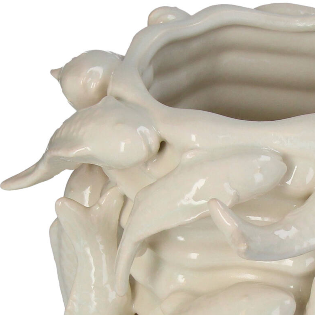 Add a refined coastal touch to your home décor with the Sea Crown Decorative Vase from Ris. Designed with delicate fish-inspired detailing and a soft ivory finish, this Vase brings elegance and character to any indoor setting. The Sea Crown Decorative Vase blends artistic craftsmanship with functional design, making it a perfect choice for showcasing your favorite indoor plants while enhancing the overall aesthetic of your living space. Its subtle texture and timeless color allow it to complement modern, classic, or coastal-inspired interiors effortlessly.