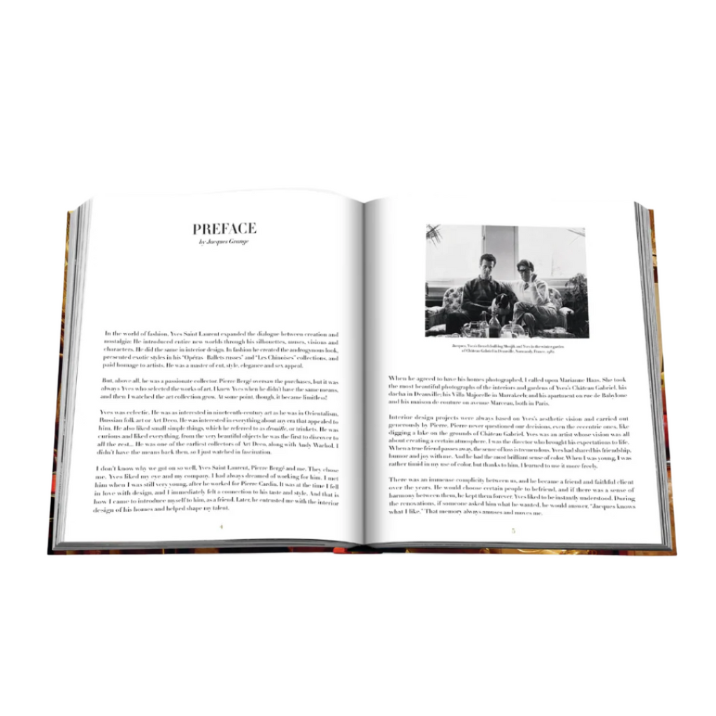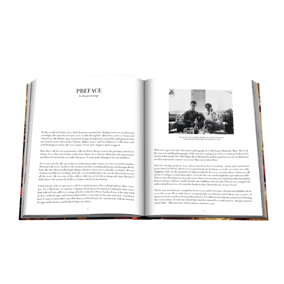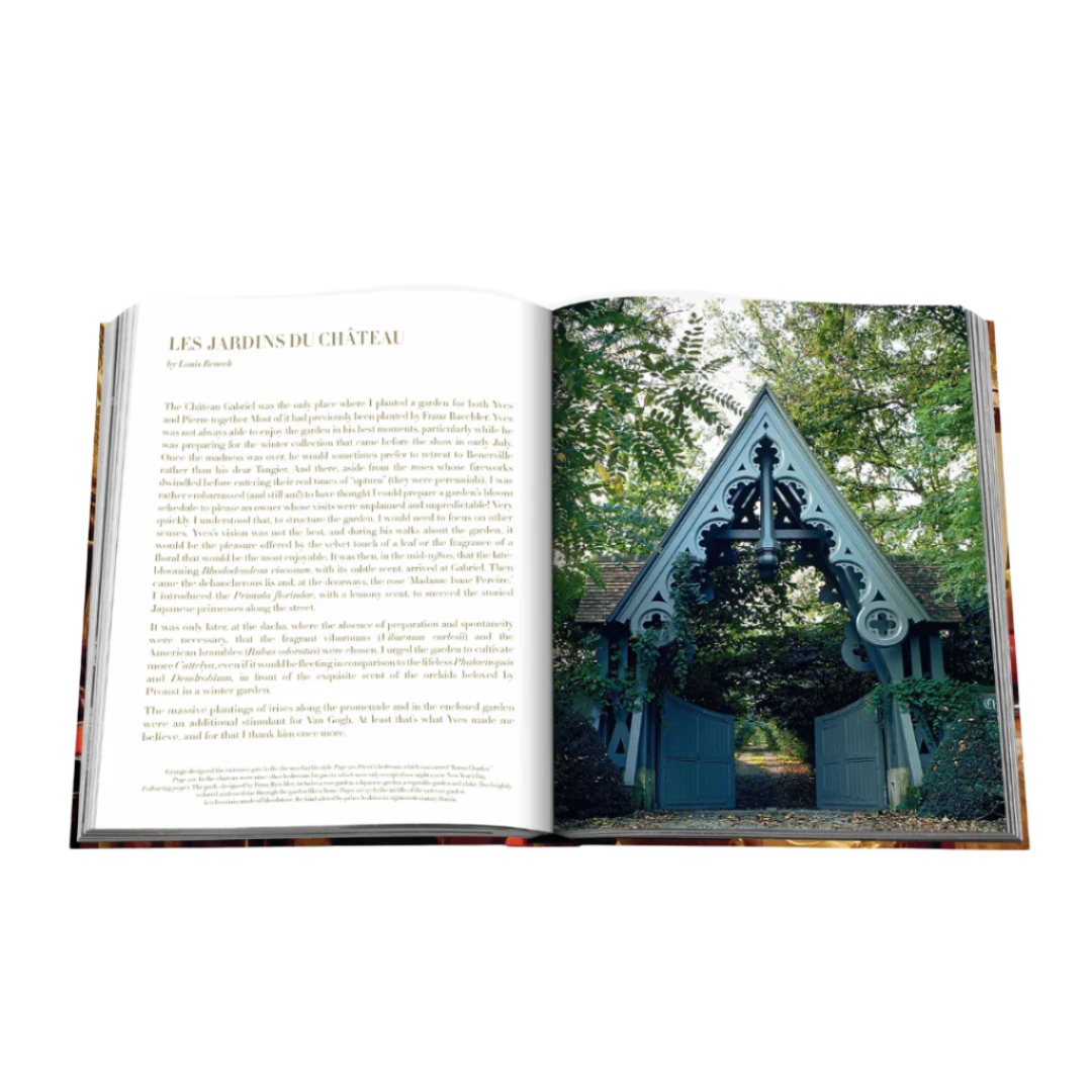 Readers are invited to discover the couple’s savoir-faire through the most exquisite photographs of the interiors and gardens of Yves’s Château Gabriel, the dacha in Deauville; the Villa Majorelle in Marrakech; the apartment on rue de Babylone and his maison de couture on avenue Marceau. With photographs by Marianne Haas, and texts and special contributions from Jacques Grange, Catherine Deneuve, Betty Catroux, Laurence Benaïm, Louis Benech and other members of Yves’ tribe, the creative couple’s legacy lives on.